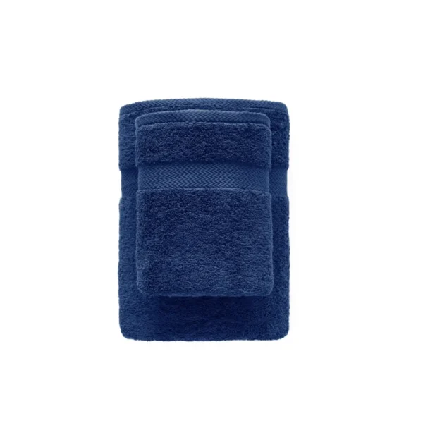 Katoenen Handdoek met Decoratieve Rand – Donkerblauw